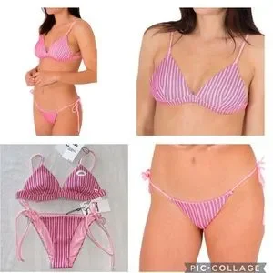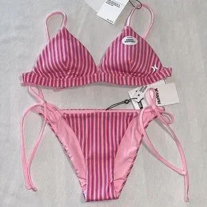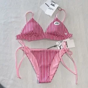 - Multicolored Rib Bikini Top With Classic Triangle Silhouette And Tie Back For Adjustability.