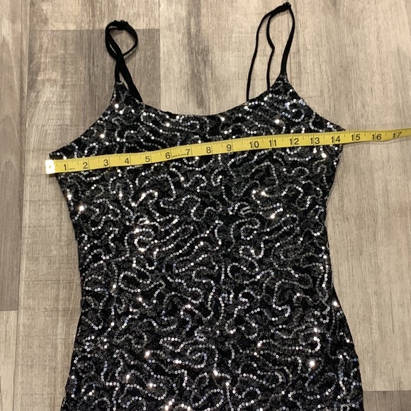 This Small Vanity Silver And Black Bling Tank would pair great with a blazer.