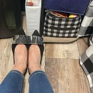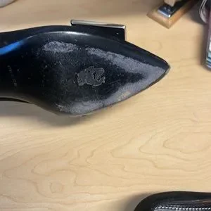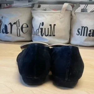 Black leather suede with exaggerated silver buckles. Previously worn with still tons special events left to rock these gorgeous flats! Size 36. Inside still perfect. Light scratches in buckle.