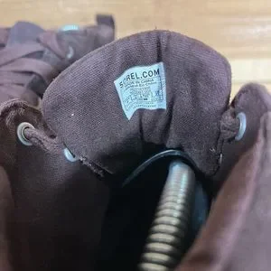 Sorel Madson MOC Toe Waterproof Boots, 5Y, Brown Leather. Good used condition, spot on right heel, see pictures.