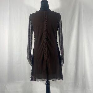 Pretty Angel Brown Dress,tunic dress, top,lace,floral design,sheer,ruffles,small
