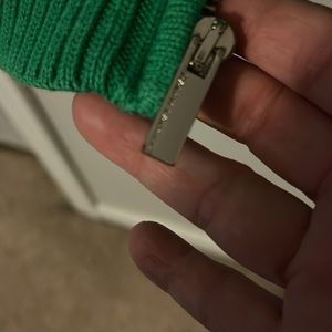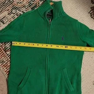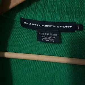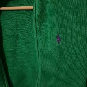 Super cute Ralph Lauren full zip sweater ! Great green color and navy polo horse. Cute cable knit design down each arm !