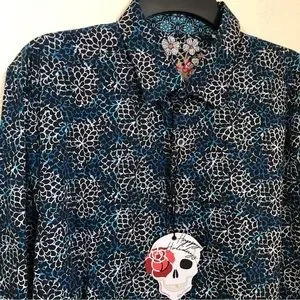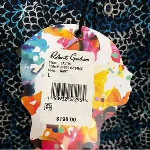 ROBERT GRAHAM Large Baltic Long Sleeve Shirt Flip Cuff Navy Floral Geometric NWT $198.