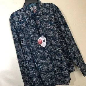 ROBERT GRAHAM Large Baltic Long Sleeve Shirt Flip Cuff Navy Floral Geometric NWT