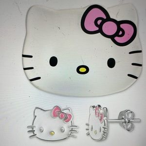 Hello Kitty Enamel Stud Earrings/Sterling Silver/Ceramic Trinket Dish NWT