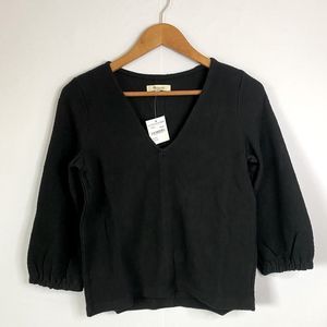 NWT MADEWELL Texture & Thread Full Knit Black Sleeve Top