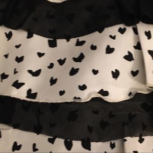 Lined in polyester, this silk dress offers tiered layers, alternating a raw-edged mesh and its heart-patterned silk fabric. Sweet & classy. Can be edgy w the right shoes & hair style.
