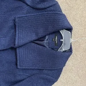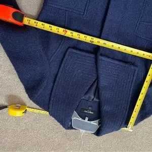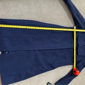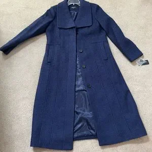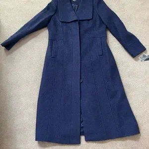 Kenneth Cole New York blue purple, midi coat size large, never worn. See pictures for fabric and measurements. Has hidden buttons, no belt, side pockets and topstitched collar.