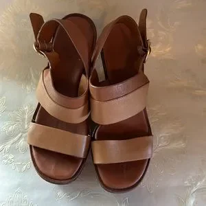 Straps & Buckle Closure at Ankles. Please pay attention to the pictures. These are used sandals but there is still a lot of life left on them. Some dark marking on the back of the heels.