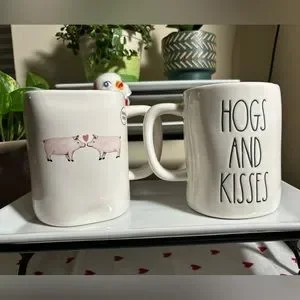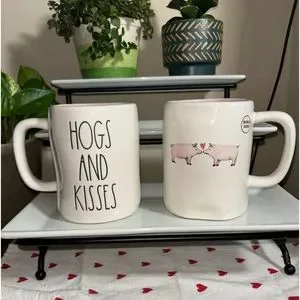2 (two) Rae Dunn HOGS & KISSES double sided mug