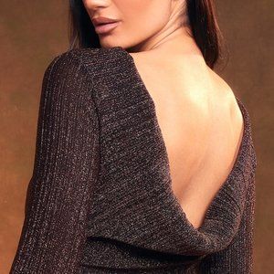 Got plans for the weekend doll? Then this chocolate glitter plisse cowl low back long sleeve bodycon dress is here to solve all your styling dilemmas. Made using a chocolate glitter plisse material with a low back design and long sleeves this bodycon dress just went straight to the top of your hit list. Team with wrap around heels and your fave accessories for a combo we're crushing on.