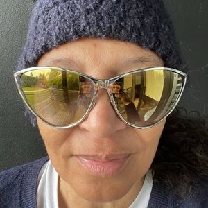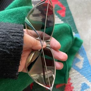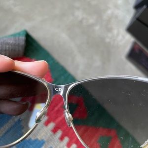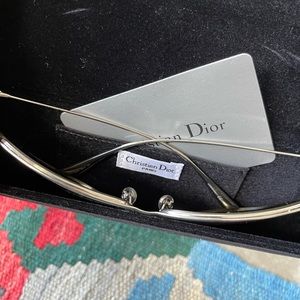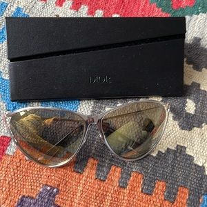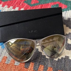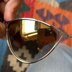 Authentic Dior sunglasses- new in excellent condition- oversized- only tried on, light weight- silver rims with yellow lenses-mirrors comes with black eyeglass case- box and dust cloth - priced to sell🎉🎉🎉