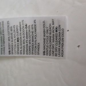 this beautiful and youthful blouse is 95% cotton and 5% spandex. it has a rounded bottom and neckline