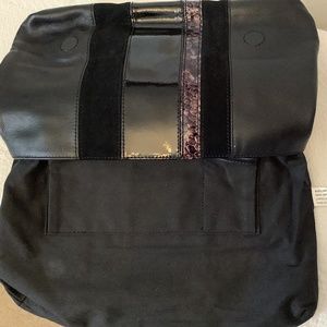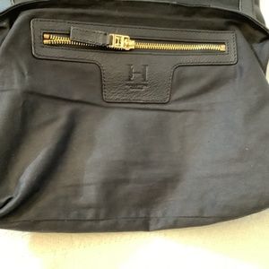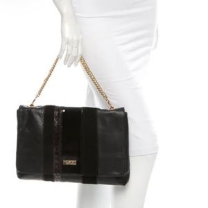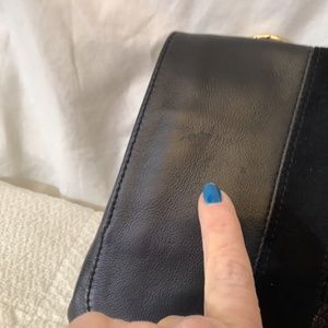 EUC Halston Heritage Black Leather suede shoulder crossbody gold chain