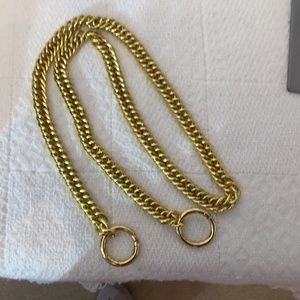 Can be hand, shoulder or crossbody/ removable crossbody gold tone chain strap
