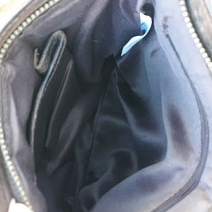 NWOT A heavy oil-rich leather in a dark brown from Estalon with 2 zipper pockets on the front and a zippered top closure. The zipper pulls are all gold tone "D" rings with long leather strips. The long crossbody strap drops 20" and is adjustable via a slide buckle to become a shoulder length. The interior is a brown fabric lining with a zipper pocket and one slip pocket trimmed with leather. It measures 9.5" wide, 10" in height and a depth of 1.5". It has the wonderful leather scent and is styled with vintage charm! The bag is a sturdy design and lends itself to a boho/hippie vibe, western or a classic preppy look! Thanks for looking!