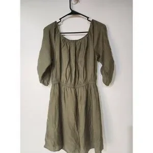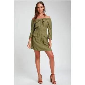 Lulus Etta Olive Green Button Front Off-the-Shoulder Dress good pre-owned condit