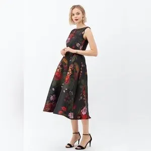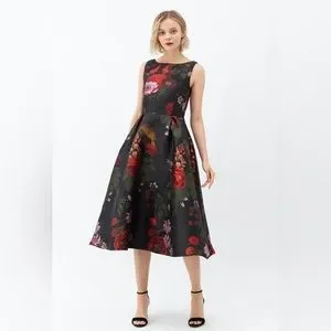 NWT CHICWISH GORGEOUS ROSE JACQUARD SLEEVELESS MIDI DRESS