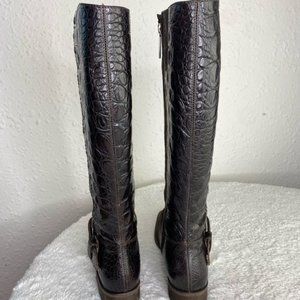 Ladies Donald J Pliner Brown Suede Alligator Knee High Zip Up Boots Size: 6.5 M
