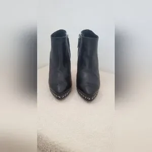 I am selling authentique Chanel black leather ankle boots in size 38.5 Please look at pictures carefully, they are used so have normal wear, scuffs and little mark. They dont come with anything its just the shoes.