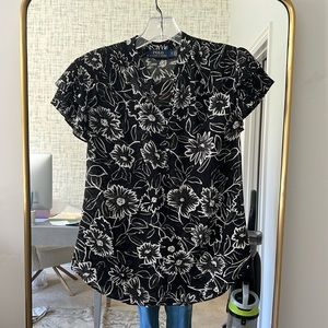 Polo Ralph Lauren black printed floral flutter sleeve top