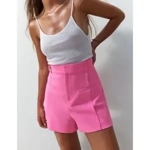 Zara Bubblegum Pink Super High-Waisted Mini Shorts