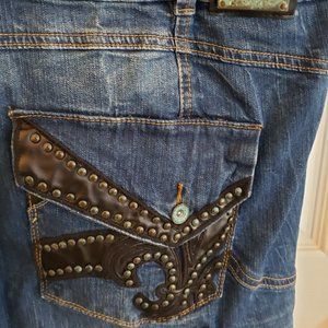 Rare House of Dereon by Beyonce, Plus Size 3X, Denim button up bustier with attached White, collared dress shirt, with pinch short sleeved Jumper