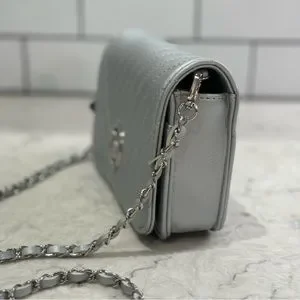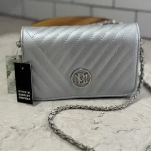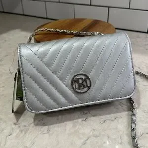 Badgley Mischka Silver Crossbody Bag with Round Plate