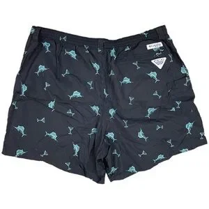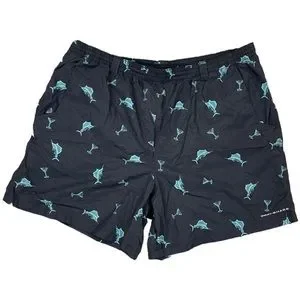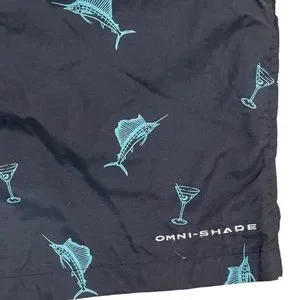 COLUMBIA Swim Trunks Black/Turquoise Martini & Marlin Print Size XL