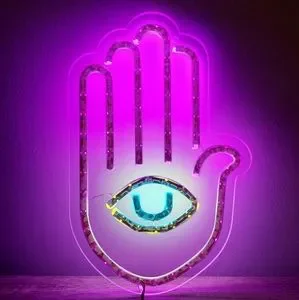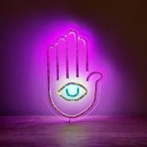 Hamsa Hand of Fatima w/Greek Evil Eye of Protection Neon Light Wall Hanging Sign Art Home Decor Home Decoration Home Accent Conversation Piece