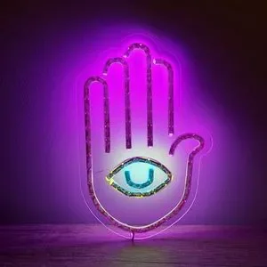 LAST ONE! Purple Hamsa Hand Fatima Evil Eye Neon Light Lamp Wall Sign Hanging