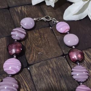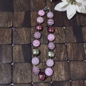 Women's Purple and Pink Beaded Necklace. Stones are polished smooth, a real delight!