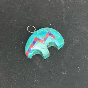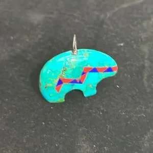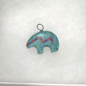 Vintage Turquoise Bear Pendant Native American Indian Jewelry