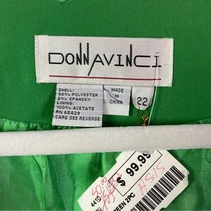 Beautiful vintage green jacket blouse with a scalloped collar with clear beaded details. Invisible button closure on front. Fully lined, long sleeves. New with tags condition. Measures approx (flat) chest 27 in, length 27 in. Donna Vinci label.