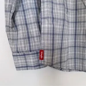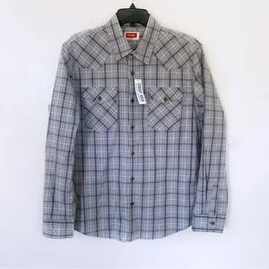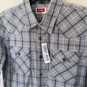 NWT Wrangler Men’s Cowboy Wash Plaid Button Up Vintage Indigo Blue size Medium