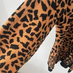 Obsessed with this brown black cheetah color. The color is so vibrant almost orange. Throw it over a vintage tee with some baggy jeans for a cool look. So comfy & cozy. It’s in a small/medium and has an oversized fit. Can be dressed up or down. It’s in excellent used condition - has some minor piling & wear but no flaws.