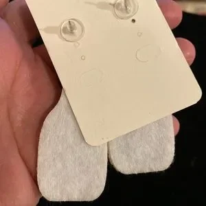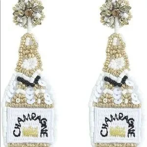 White and gold champagne bottle beaded pierced earrings. Sequins. Felt back. Super fun!