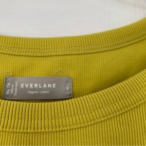 EVERLANE Womens Top Large Pullover Crew Ribbed Organic Cotton Basic Chartreuse