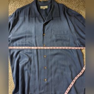 Tommy Bahama dark blue button down 100% silk short sleeve shirt with chest pocket, size XL