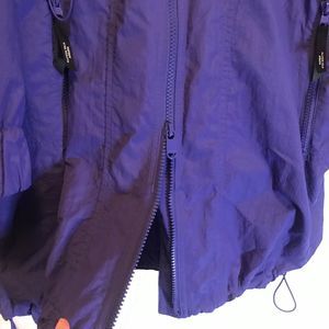 This Windbreaker is available in Women's size L and features a beautiful purple color. The jacket is also incredibly lightweight, making it easy to pack and bring with you on all your adventures. The jacket's features include a wind-resistant design, making it perfect for any outdoor activity. Add this stylish and functional jacket to your activewear collection today!