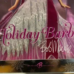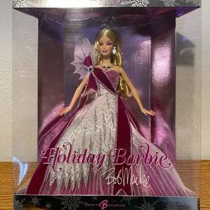 The ‘Holiday’ by Bob Mackie is a 2005 Barbie series that has been specially designed for kids aged 6 and above. The ‘Holiday’ by Bob Mackie Barbie doll wears a finely crafted gown, decked with a glitter-printed jacquard, a mushroom-pleated tulle, a sparkle organza, a satin, and a flock sash with a beautiful silver edge that compliments her gown. This 2005 Barbie series doll has a sparkly printed starburst pattern decorated on her shoulder, which adds style to the outfit. This Barbie doll wears charming accessories that include a brooch, a necklace, a pair of earrings, and a crown that add to her ensemble.Barbie Collector. New in original box, never been out of box and the box is in great shape.