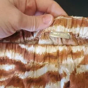 excellent condition. barely worn if at all. nonsmoking home. I got from real real to go with the matching top and the top didn't fit. pants are a size medium, fit like a 4-6. elastic waist. length is 41 inches from waist to hem. inseam is 28.5-29 inches.
