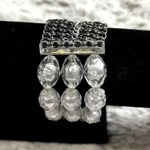 Stretchy Bracelet With Crystal Beads & Chains 7.25" Diameter Before Stretched New The Only Stretchy Part is the Beaded Area