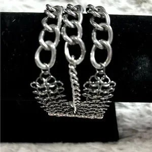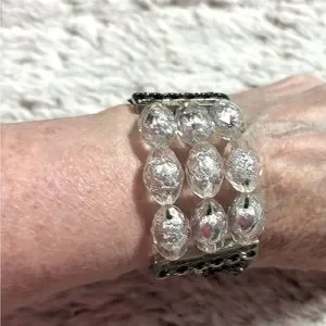 Stretchy Bracelet With Crystal Beads & Chains 7.25" Diam. Before Stretched New