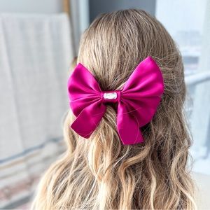 Handmade Magenta Pink Satin Hair Bow Clip With Jewel Made by ClosetVenture