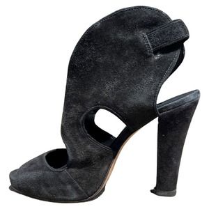 Rebecca Minkoff Demure Toe Suede Bootie High Heel Peep Size 7.5 EU 37.5 Black