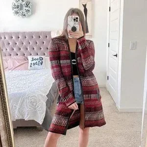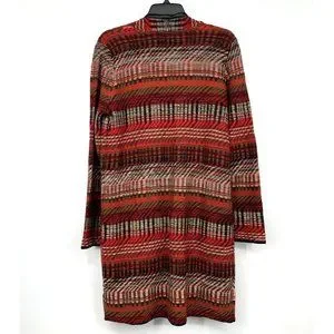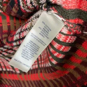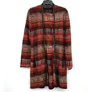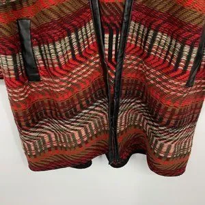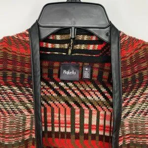 Rafaella Cardigan Womens Size Medium Red Black Faux Leather Trim Open Front. Great pre-owned condition. Pockets. Chest: 20"