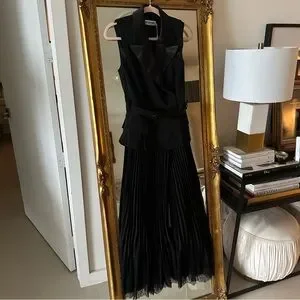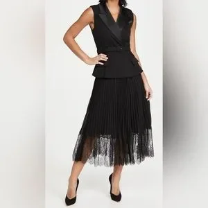 NWT Self-Portrait blazer vest belted chiffon pleated midi dress with lace hem. So pretty! Size US 2.