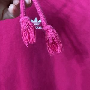 Comfy and cute hot pink Adidas Originals hoodie! Embroidered white trefoil logo. Kangaroo pocket, hood and matching pink drawstring.