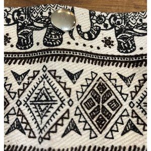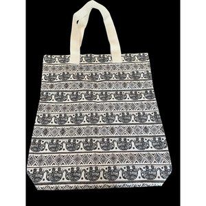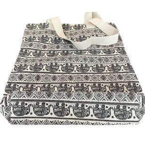 Unbranded Canvas Tote Elephant Pattern Black Off White 17.5" x 15.5" Handmade